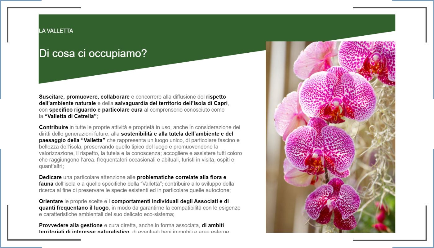 Amicidicetrella.it is the website of “Amici di Cetrella” association founded in 1993 with the aim of arousing, promoting, collaborating and contributing to the dissemination of respect for the natural environment and the preservation of the territory of the island of Capri, with specific regard and particular care to the area known as the “Valletta di Cetrella” one of the most beautiful itineraries of the island of Capri.